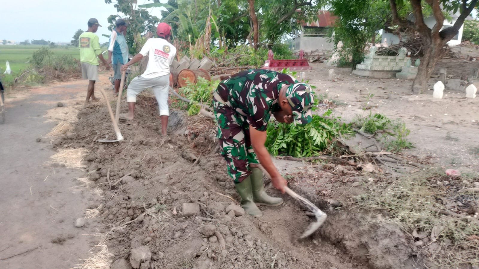 “Kegiatan ini merupakan wujud kepedulian dan kebersamaan kami dengan masyarakat. Dengan gotong royong, pekerjaan menjadi lebih ringan dan hasilnya dapat dirasakan bersama,” ujar Serka Ariyono.