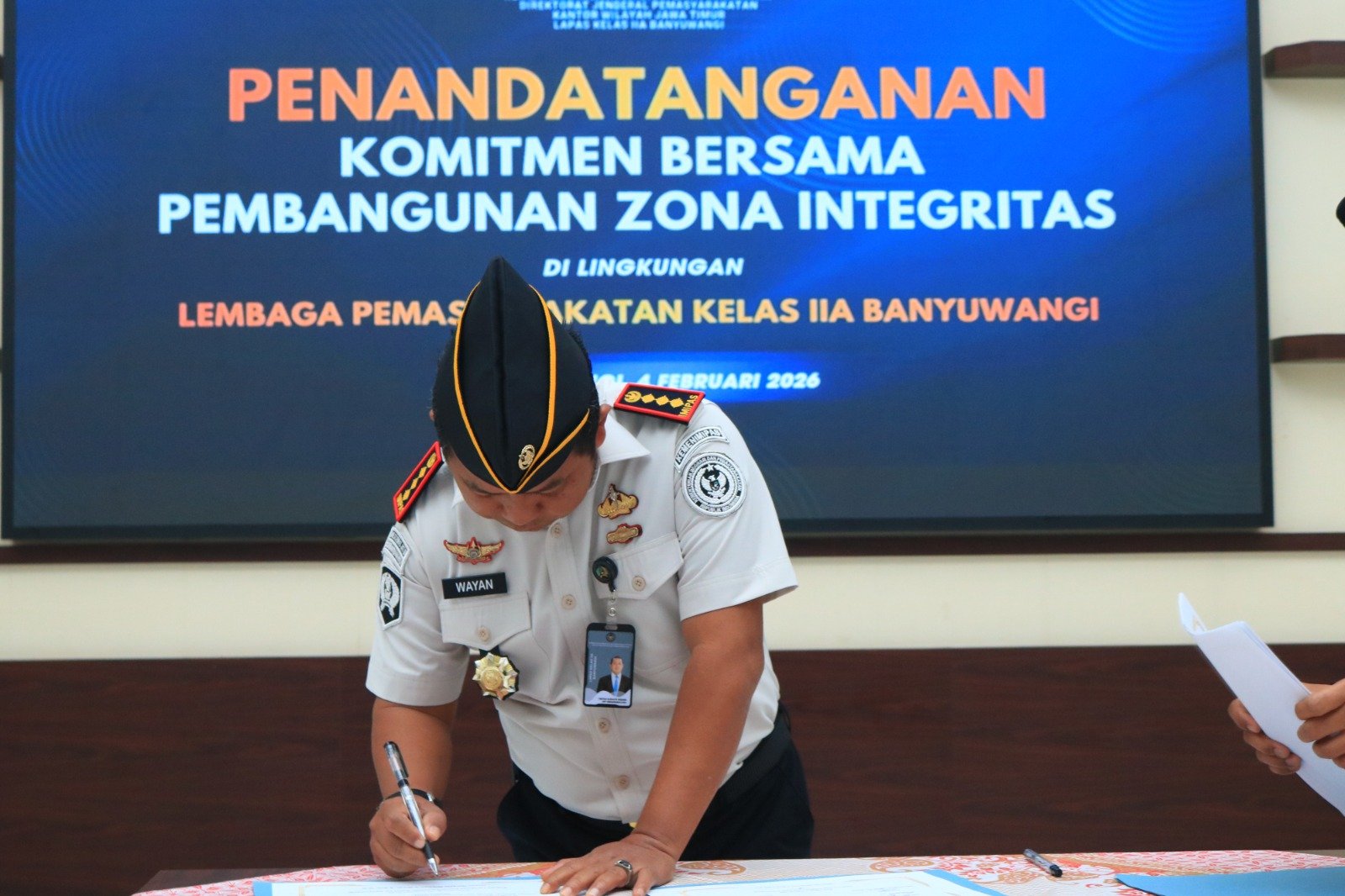 Kepala Lapas Banyuwangi, I Wayan Nurasta Wibawa, yang memimpin langsung pelaksanaan penandatanganan tersebut menegaskan bahwa komitmen ini bukan sekadar seremonial di atas kertas. Ia meminta seluruh jajarannya untuk mengimplementasikan poin-poin komitmen tersebut dengan sebaik-baiknya dalam tugas sehari-hari.