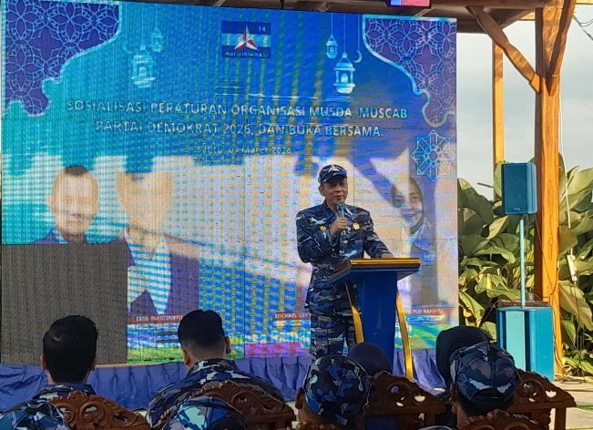 Banyuwangi – Dewan Pimpinan Cabang (DPC) Partai Demokrat Kabupaten Banyuwangi menggelar acara sosialisasi peraturan organisasi terkait pelaksanaan Musyawarah Daerah (Musda) dan Musyawarah Cabang (Muscab) Partai Demokrat tahun 2026. Acara ini dilanjutkan dengan kegiatan buka bersama (bukber) yang dihadiri oleh seluruh pengurus dan kader Partai Demokrat se-Kabupaten Banyuwangi. Kegiatan yang dilaksanakan di Kantor Lap AHY FC, Desa Bubuk, Kecamatan Rogojampi, Kabupaten Banyuwangi, Sabtu (7/3/2026)