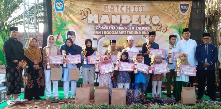 Banyuwangi – SMAN1 Rogojampi (SMANROG) atau yang lebih dikenal dengan SMAN 1 Taruna Budaya menggelar Festival Ramadhan “MANDEKO” (Gema Ramadhan Ngenteni Buko), acara untuk menyemarakkan bulan yang penuh berkah yaitu bulan suci ramadhan yang dilaksanakan di halaman sekolah jalan Ali Sakti No.2 Pengatigan Rogojampi Banyuwangi Jawa Timur, Jum’at (13/3/2026).
