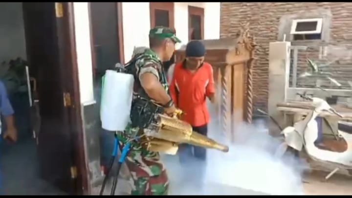 Gencarkan Pencegahan DBD, Babinsa Koramil 0823/04 Mangaran bersama Puskesmas Lakukan Foging di Pemukiman Warga