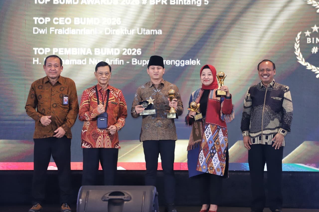 Selain Golden Trophy, sejumlah penghargaan lain juga turut diraih. Bupati Trenggalek Mochamad Nur Arifin menerima penghargaan Top Pembina BUMD 2026 atas komitmennya dalam mendorong kemajuan BUMD. PT BPR Jwalita (Perseroda) kembali memperoleh Top BUMD Awards 2026 kategori BPR Bintang 5, sementara Direktur Utama PT BPR Jwalita (Perseroda), Dwi Fraidianriani, S.E., M.M., dianugerahi Top CEO BUMD 2026.