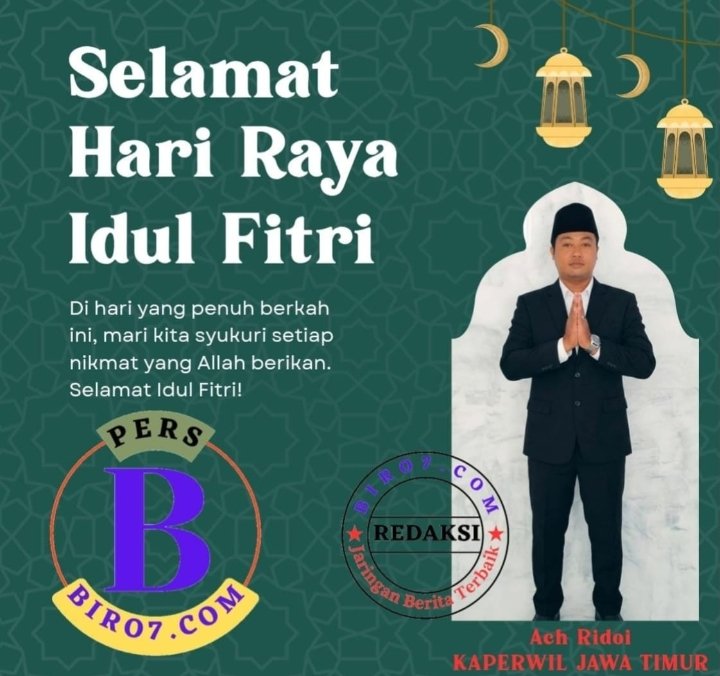 Pasuruan _ Biro7.com _ Kepala Perwakilan Wilayah (Kaperwil) Media Biro7.com. Pasuruan Raya, Ach Ridoi, mengucapkan selamat Hari Raya Idul Fitri 1 Syawal 1447 Hijriyah kepada seluruh jajaran pimpinan Redaksi serta Keluarga Saudara teman dan Masyarakat di jawa timur khususnya Kabupaten Pasuruan dan sekitarnya. Sabtu (21/03/2026).