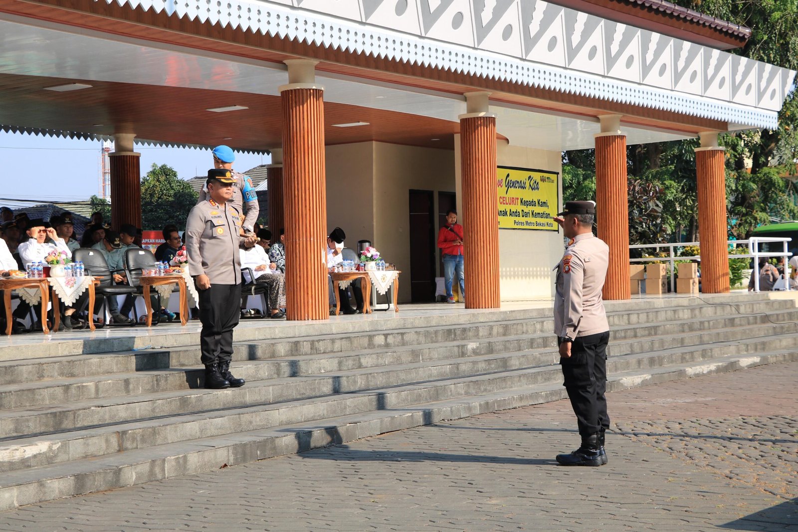 Kegiatan yang diinisiasi oleh Kapolres ini dihadiri oleh Wali Kota Bekasi Dr. Tri Adhianto Cahyono, Wakil Wali Kota Abdul Harris Bobihoe, M.Sc., dan Dandim 0507/Bekasi yang diwakili oleh Kasdim Letkol Inf Erlangga Gassing. Selain itu, hadir pula perwakilan Kajari, Sekda Kota Bekasi, Ketua MUI, Ketua FKUB, serta pimpinan Organisasi Masyarakat, LSM, dan Organisasi Kepemudaan.