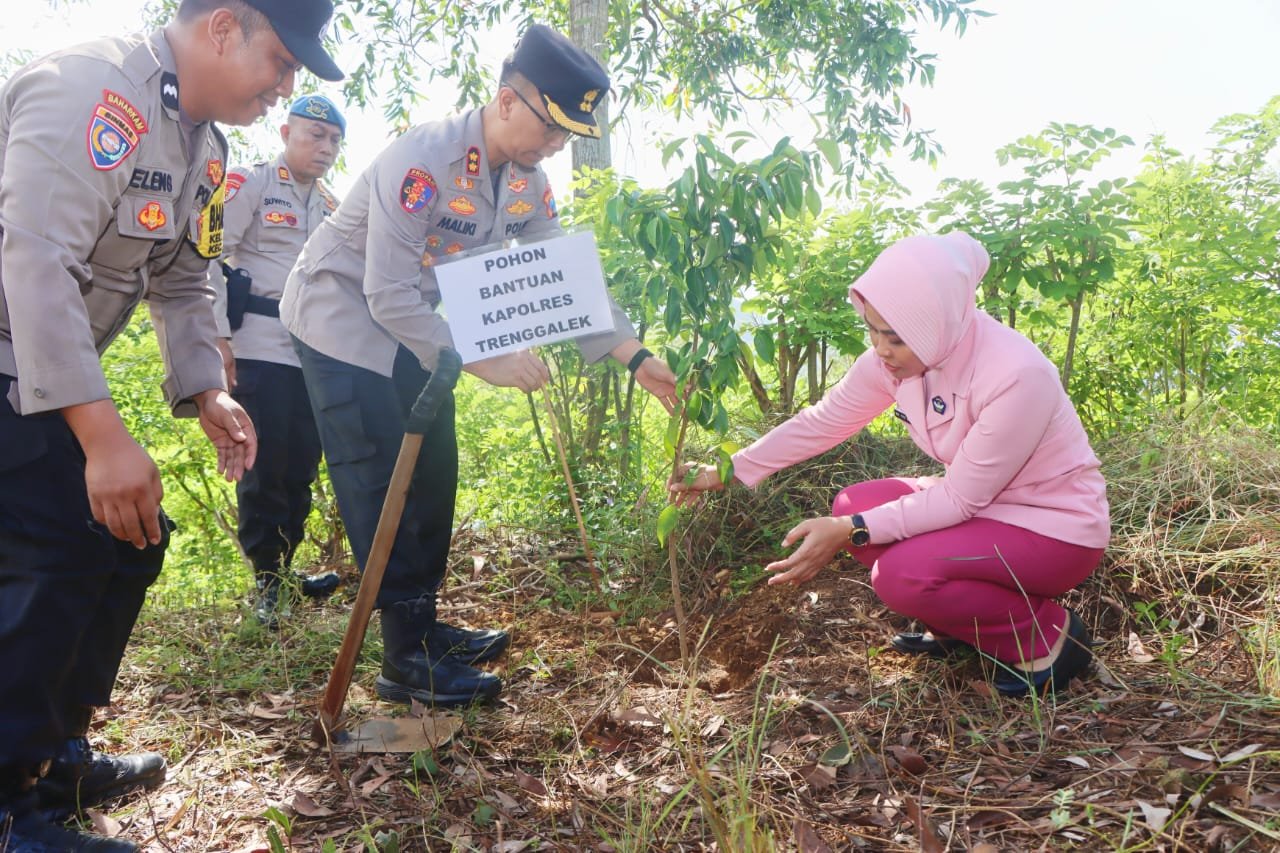 Kapolres Trenggalek Ikuti Jejak Mbah Sadiman Tanam Beringin di Lahan Kritis