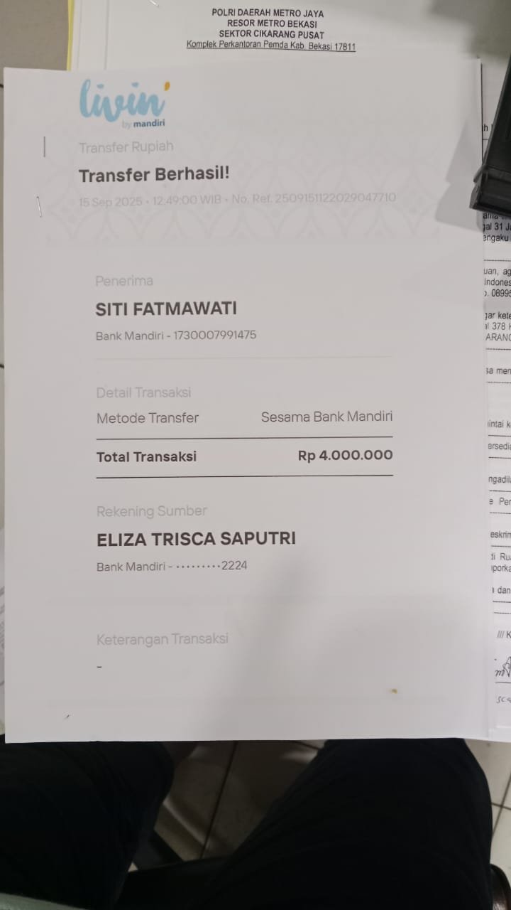 Korban, yang tergoda dengan tawaran tersebut, mentransfer uang sebesar Rp 4.000.000, sementara pelaku meminta sisa Rp 1.000.000 ke rekening yang sama atas nama Siti Fatmawati. Setelah transaksi dilakukan, pelaku menyuruh korban untuk pulang dan berjanji akan menghubungi. Sayangnya, pelaku tidak pernah dapat dihubungi kembali.