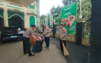 Bekasi — Dalam rangka mempererat hubungan dengan masyarakat serta menjaga kebersihan tempat ibadah, jajaran Polsek Medansatria melaksanakan kegiatan program BANG JASRI melalui kerja bakti di Masjid Al-Hikmah, Senin (23/2/2026) sore.