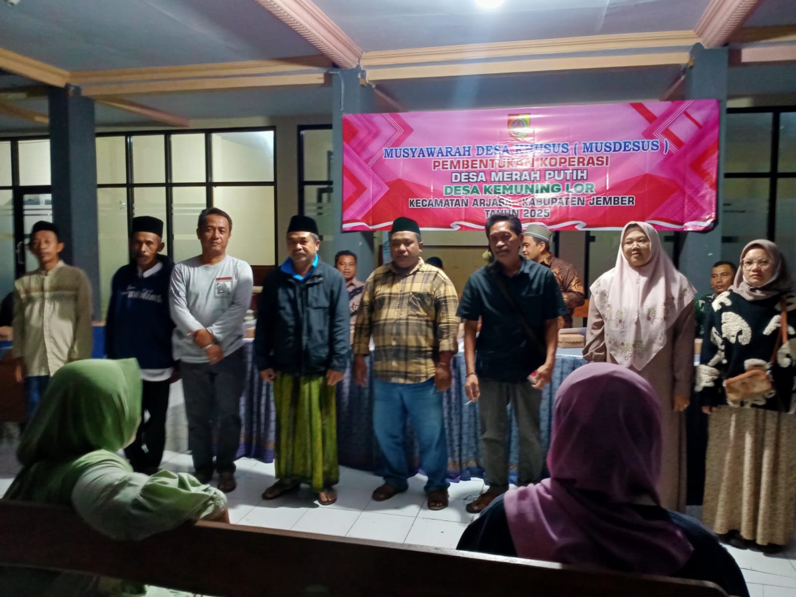 Kegiatan Musyawarah Desa Khusus (MUSDESUS) kali ini dalam rangka pembentukan Koperasi Merah Putih di Desa Kemuning Lor.