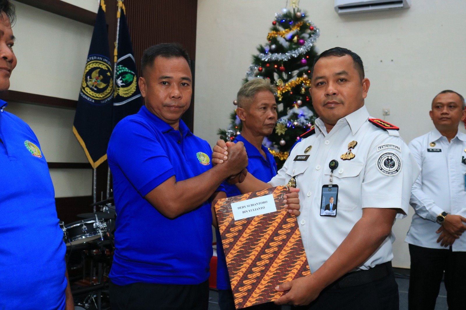 Surat Keputusan Remisi dari Kementerian Imigrasi dan Pemasyarakatan melalui Direktorat Jenderal Pemasyarakatan diserahkan oleh Kepala Lapas Banyuwangi, I Wayan Nurasta Wibawa, beserta Kabag Tata Usaha dan Umum Kanwil Ditjenpas Jatim, M. Ulin Nuha, di sela-sela perayaan Natal di Aula Sahardjo Lapas Banyuwangi, Kamis (25/12/2025).