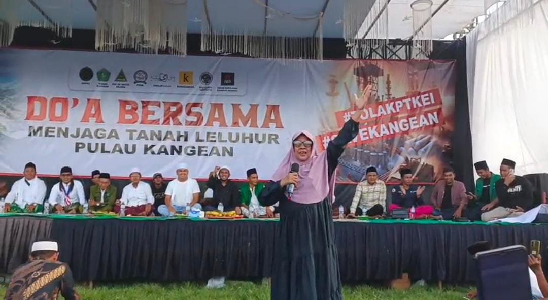 NASIONALTODAY.COM|Kangean, Jawa Timur — Aksi penolakan terhadap rencana survei seismik dan eksplorasi migas oleh PT KEI di Kepulauan Kangean semakin emosional dan meluas. Dalam acara “Doa Bersama Menjaga Tanah Leluhur” yang dipadati ribuan warga di Alun-Alun Kecamatan Arjasa pada Kamis (20/11/2025), salah satu orasi yang paling menggemparkan jagat maya datang dari seorang tokoh sepuh, Nenek Romlia.