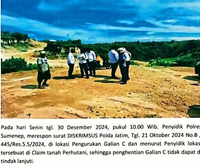 “Setelah ada pelimpahan dari Polda Jatim, Polres Sumenep sempat melakukan pengecekan lokasi yaitu tanggal 30 Desember 2024, di mana Penyidik Polisi datang ke lokasi dan melihat aktivitas penambangan tersebut.
