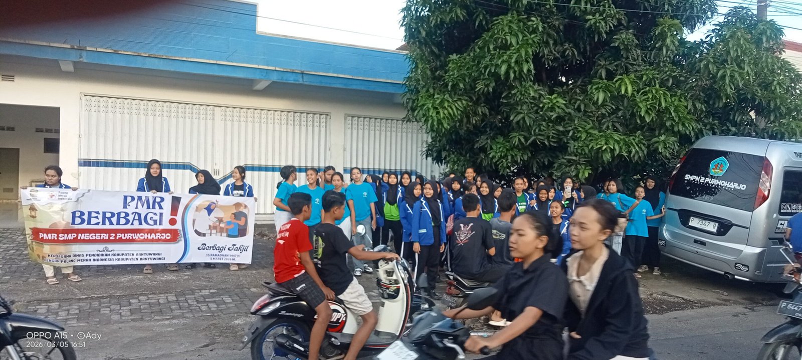 BANYUWANGI – Dalam rangka menumbuhkan kepedulian sosial di kalangan pelajar selama bulan Ramadan, Pemerintah Kabupaten Banyuwangi melalui Dinas Pendidikan menggelar kegiatan PMR Berbagi Takjil yang dilaksanakan secara serentak oleh SMP Negeri se-Kabupaten Banyuwangi, Kamis (05/03/2026).Kegiatan ini merupakan bagian dari program yang diinisiasi Bupati Banyuwangi dengan menggandeng Palang Merah Remaja (PMR) di lingkungan sekolah. Melalui program tersebut, para siswa diajak untuk menumbuhkan nilai kepedulian, empati, serta semangat berbagi kepada masyarakat yang sedang menjalankan ibadah puasa.