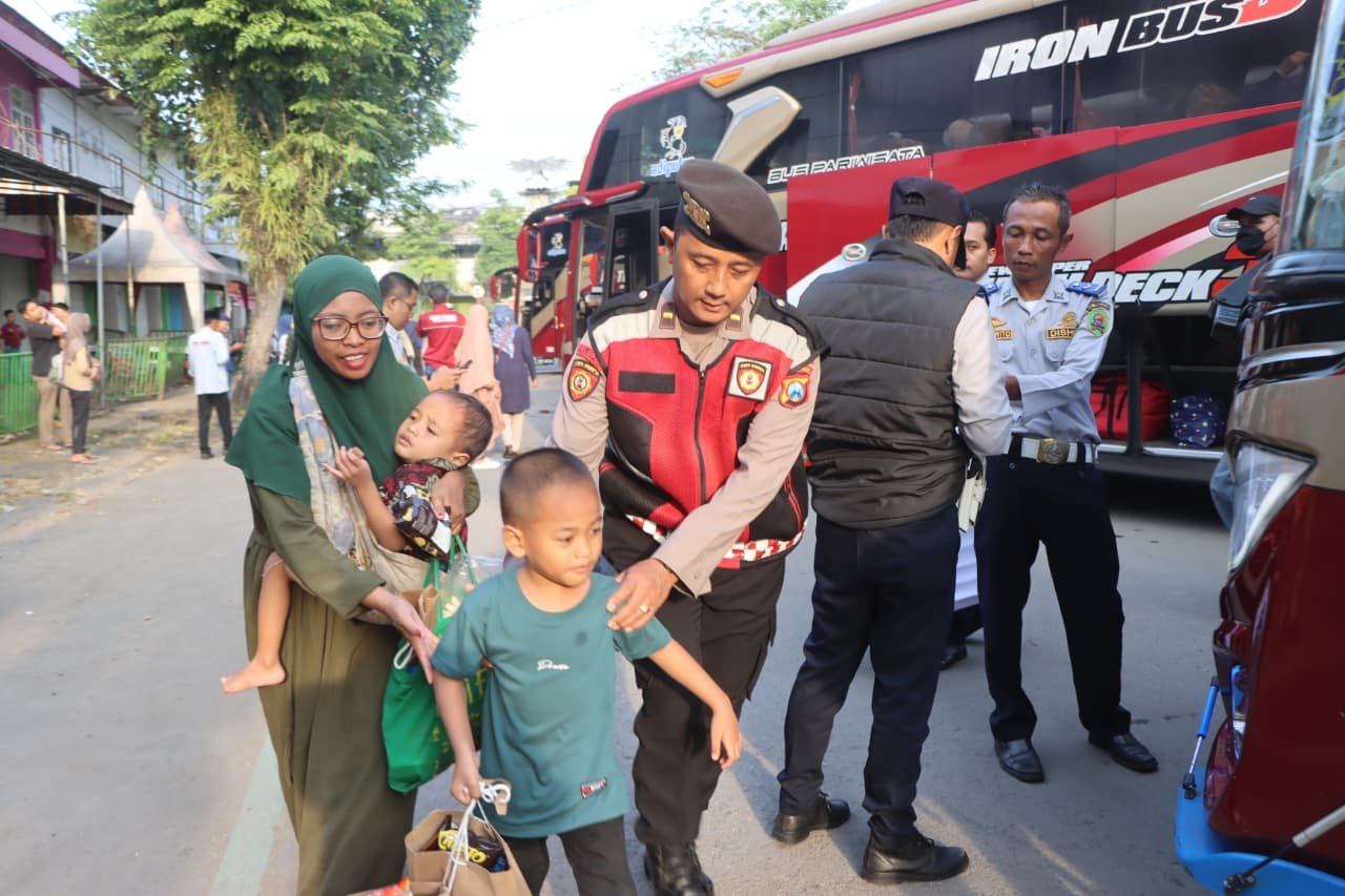 Trenggalek, Jajaran Polres Trenggalek menunjukkan komitmennya dalam menjamin kelancaran arus balik Lebaran dengan terlibat langsung dalam program balik mudik gratis tahun 2026 rute Trenggalek–Surabaya. Kegiatan yang diselenggarakan oleh Pemerintah Kabupaten Trenggalek tersebut diikuti sedikitnya 385 warga yang diberangkatkan menggunakan tujuh armada bus pariwisata.