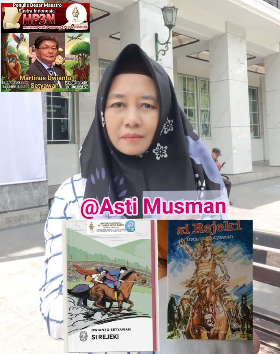 Asti Musman, dengan gaya menulisnya yang sederhana tapi penuh makna, berhasil membawa pembaca masuk jauh ke dalam dunia “Si Rejeki.”