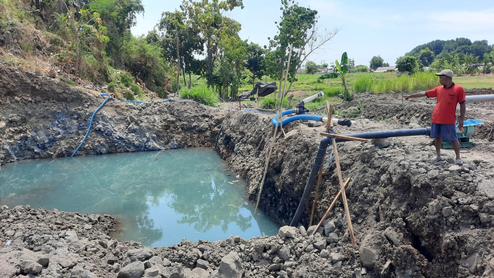 Martono menjelaskan bahwa pada musim kemarau tahun 2025 ini, pihak pabrik pengelola rumput laut memberikan fasilitas kepada para petani untuk mengairi sawahnya.