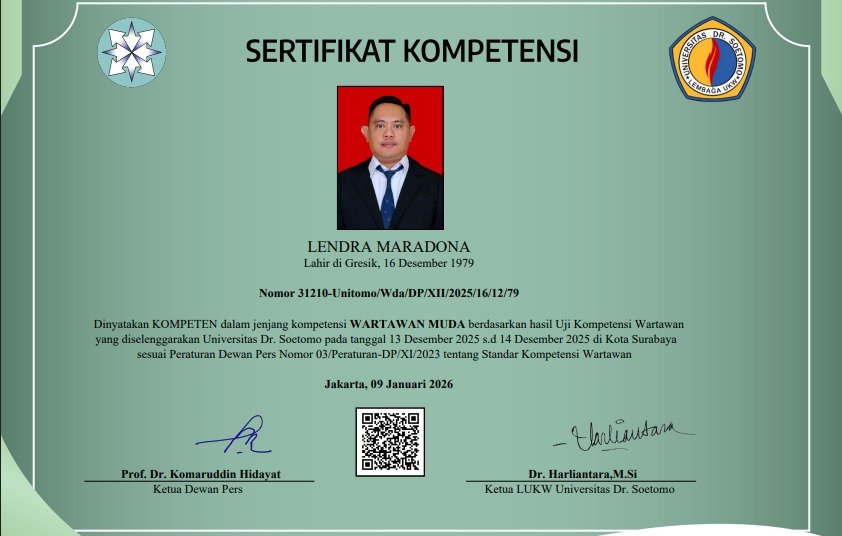 PIMPINAN REDAKSI : LENDRA MARADONA, S.H. (SERTIFIKASI UKW MUDA)
