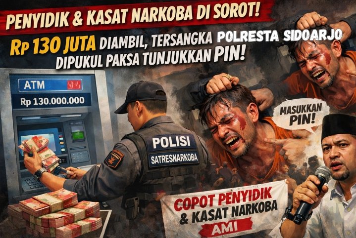 Jawa Timur|Dugaan pelanggaran berat di lingkungan Satresnarkoba Polresta Sidoarjo semakin melebar. Tidak hanya oknum Penyidik II yang disorot, tetapi juga Kanit dan Kasat dinilai harus ikut bertanggung jawab atas dugaan pengambilan uang Rp130 juta dari rekening tersangka melalui ATM.