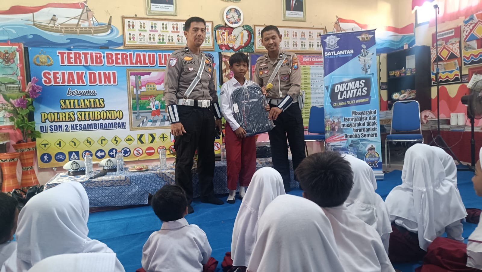 SITUBONDO – Upaya menanamkan disiplin dan etika berlalu lintas sejak dini terus dilakukan Polres Situbondo. Pada Rabu (10/9/2025), Satlantas Polres Situbondo menggelar program Police Goes to School di SDN 2 Kesambirampak, Kecamatan Kapongan, Kabupaten Situbondo.