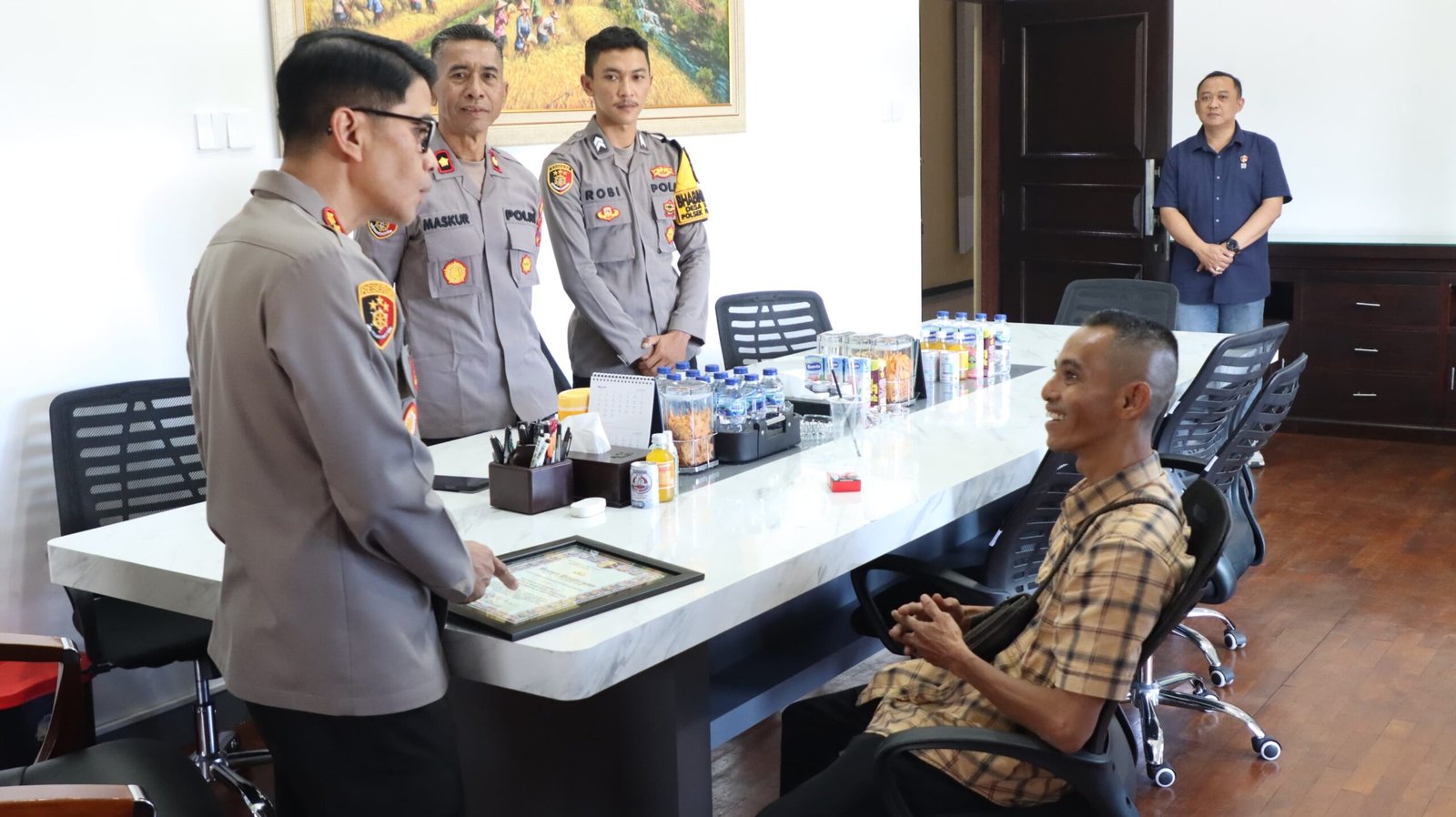 Banyuwangi – Kapolresta Banyuwangi, Kombes Pol Dr. Rofiq Ripto Himawan, S.I.K., S.H., M.H., secara resmi menyerahkan piagam penghargaan kepada Rendra Bayu Alwana, seorang warga Sarongan, pada Rabu (15/4/2026).
